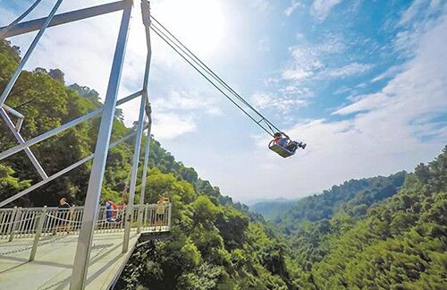 悬崖秋千是一种悬崖边的极限刺激运动,一般建立在景区高山边出,秋千从山上想外荡出,整个身体瞬间脱离安全区,让人充分体验高空之中的刺激感,引得体验者尖叫声不断,直呼惊险刺激。悬崖秋千z早火于美国科罗拉多州,该秋千建造在了400米高的悬崖边,一次可坐四个人,随着秋千的摆动,一眼望去却是高不见底的峡谷,十分刺激。悬崖秋千适用于山顶有落差位置,建于悬崖平台上,共有4米、6米、8米、10米、12米不同高度供选择。游客坐在悬崖秋千上,再经工作人员轻轻一推,秋千即从平台山往外荡出,整个身体仿佛顿时脱离依靠,让人充分体验“命悬一线”的惊险刺激。