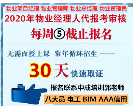 物业经理报名联系人找中成培训郭老师 微信18311352343,电话 18800162207,QQ 1277366319一对一咨询