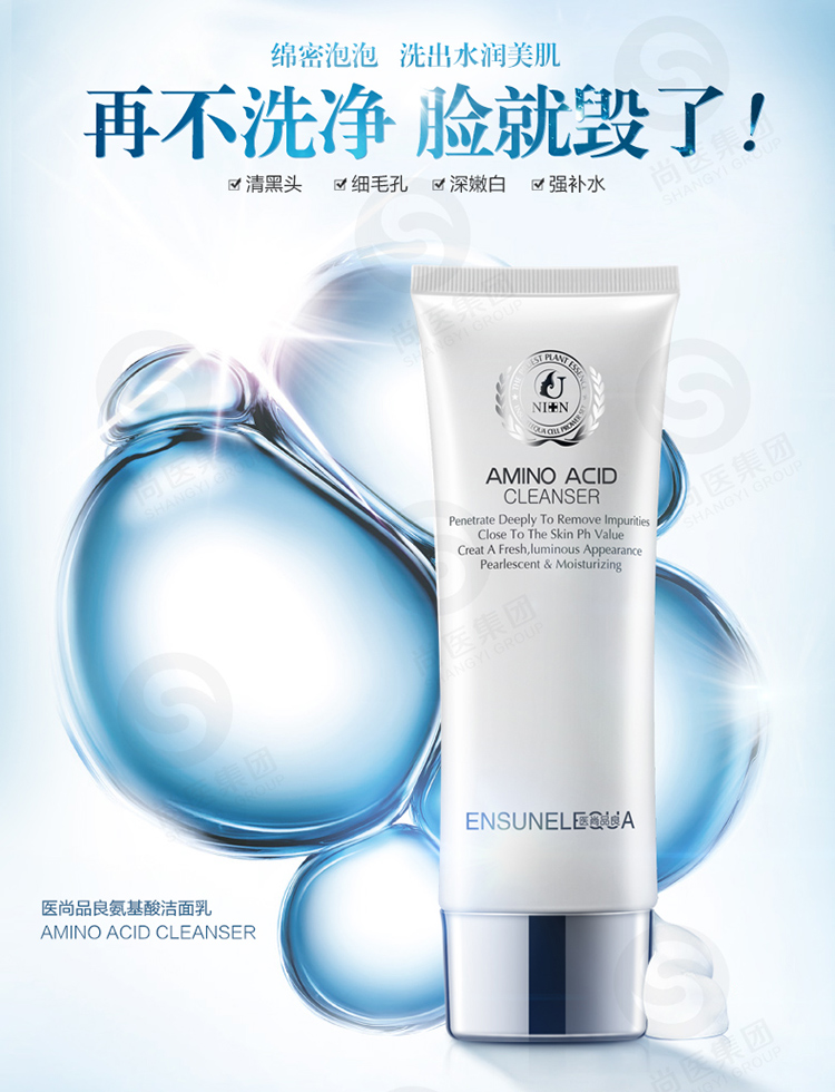 氨基酸洗面奶,弱酸性,清爽清洁,清除残妆污垢,畅通毛孔,使用后温和不紧绷,改善晦暗和不均匀肤色,同时为肌肤补充水分,均衡滋润,使美白和营养成分及时吸收,改善粗糙肌肤,使皮肤富有弹性,令肌肤柔软明亮,不会有假滑的现象