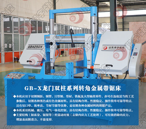 6、适用于各种角度锯切,锯架斜式下降,采用小规格锯条锯切各种型材,降低带锯条成本。