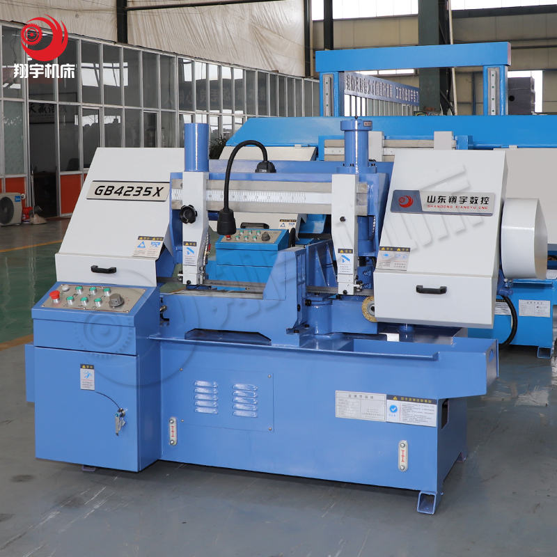 7、适用于各种角度锯切,锯架斜式下降,采用小规格锯条锯切各种型材,降低带锯条成本。