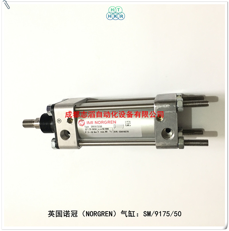 SM/9175/50英国诺冠(IMI NORGREN)英制特大型气缸技术参数简介:缸径1.75英寸、活塞杆径16mm、气缸行程为50mm、气口尺寸G1/4、维修件型号为QM/9175/00、气缸工作压力范围2-10bar、工作温度可达80摄氏度、S/N:CD018278、产地为UK