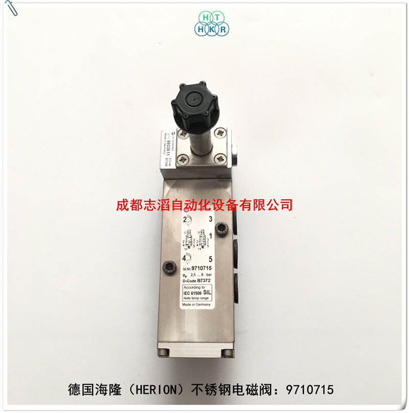 9710715.0000.000.00德国海隆(IMI HERION)不锈钢电磁阀参数简介:阀体材料不锈钢、接口尺寸1、3、5为1/4NPT,2和4为法兰;功能为2位5通;工作方式电控/弹簧;Kv值为1.3立方米/H;阀体重量1kg、产地德国、