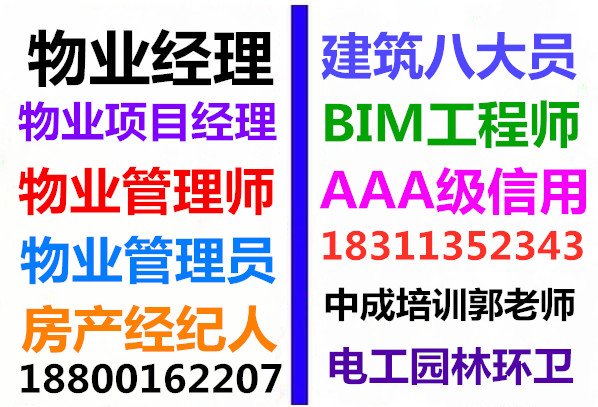 培训内容:《物业管理概论》,《物业管理法规》,《房地产经营与管理》,《房地产基本制度与政策》,《房屋设备知识》,《房屋结构构造与识图》等课程
