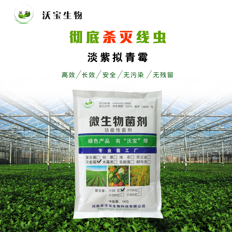 淡紫拟青霉属于内寄生性真菌,是很多植物寄生线虫的重要天敌。主要寄生于卵,也能侵染幼虫和雌虫,可明显减轻多种作物根结线虫、胞囊线虫、茎线虫等线虫病的危害。淡紫拟青霉菌剂是新型纯微生物活孢子制剂。具有高效、长效、安全、无污染、无残留等特点,可明显刺激作物生长。