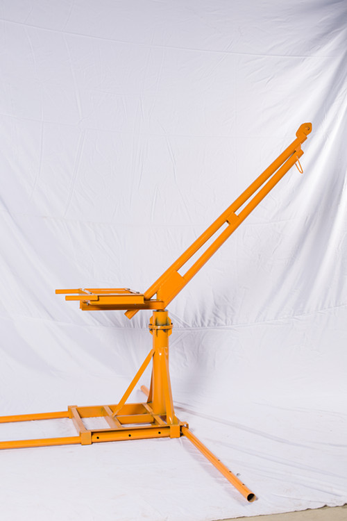 选择双电机吊窗机(移动斜臂款),这款双电机电动提升机功率较大,在10米之内提升1吨的重物没有问题,这款吊机立柱与斜臂部分是可以伸缩调节,这也是根据现场实际尺寸来调节,并且双电机部分与支架部分都是可以移动,方便了移动吊装地点,但是在使用的时候一定要要压配重。