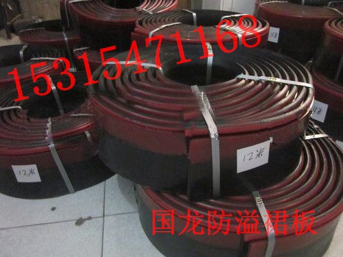 咱们的这个双密封防溢裙板采用的直板+裙边双密封一体化结构,直板紧贴导料槽侧帮,底部与皮带接触,防止物料外溢;裙边外翻起,可在一定角度内旋转,靠橡胶板弹力,自动跟踪皮带,始终与皮带保持紧密接触,密封性能优异。裙板的裙边密封部分采用单边圆弧过渡,皮带跑偏时,不会伤害皮带及裙边,并能自动恢复原状。导料槽每侧裙板按要求做成一个整体,与导料槽同长,防止接缝处漏风。为提高防溢裙板耐磨性能,