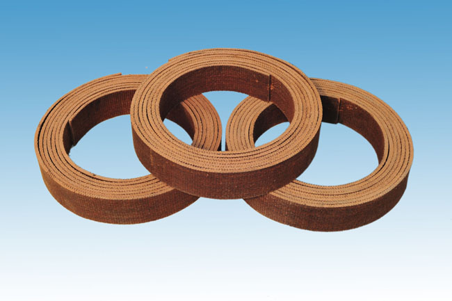石棉编织型刹车带选用含有2根铜丝的石棉线条经过先进机械设备整体编织,浸渍特别配制的高分子树脂,经高低温等工艺定型而成。产品摩擦性能好、磨损率低、抗拉强度高、耐高温、使用寿命长,具有优良的防油性及防冲击性。