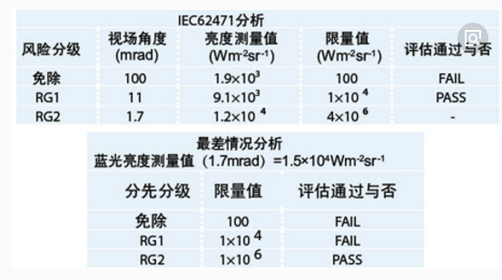 EN62471即灯和灯系统的光生物安全性的测试标准,主要测试灯具光辐照度和光辐亮度,评估光辐射对眼睛及所产生的危害,并根据测得的数据对每种产品进行分级,包括豁免级,低危害级,中等危害级,高危害级。