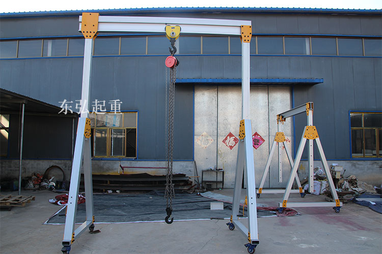 铝合金小型龙门架相比普通材质小型龙门吊在使用过程中具有明显的优势,机身采用全镁铝合金材质较普通钢制龙门吊要轻便许多在使用过程中有效的减轻工作强度。