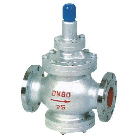 活塞式蒸汽减压阀属于先导活塞式减压阀。由主阀和导阀两部分组成。主阀主要由阀座、主阀盘、活塞、缸套、弹簧等零件组成。导阀主要由阀座、阀瓣、膜片、弹簧、调节弹簧等零件组成。通过调节调节弹簧压力设定出口压力,利用膜片传感出口压力变化,通过导阀启闭驱动活塞调节主阀节流部位过流面积的大小,实现减压稳压功能。本产品主要用于蒸汽管路,起减压稳压作用。