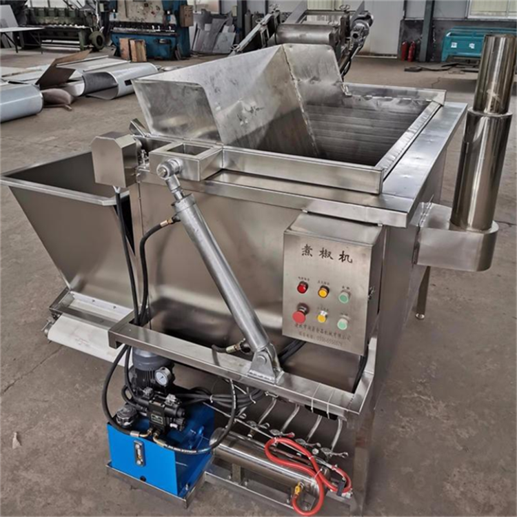 5、现在化蒸煮漂烫设备,整机配有自动传输系统,防浮系统,溢流系统,加热自动控制系统,自动控温系统。物料经过漂烫,蒸煮可清除物料异味及杀青,收紧物料肉部组织结构。使物料香味不易流失,该机设备速度可调,输送速度稳定,实现了自动连续生产的目的,且水随时调控,加之输送网采用高强度优质不锈钢,结构牢固,承载物料重,极大的提高了生产效率,该机外形美观,结构合理,操作方便。