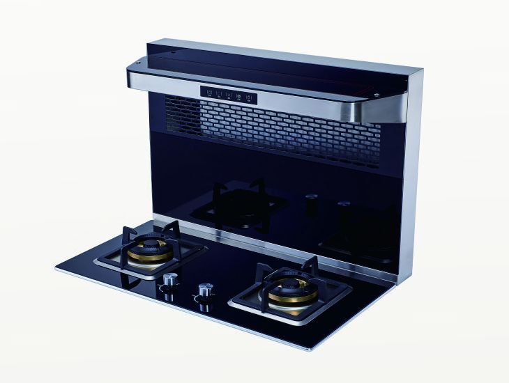 产品特点:三段模块化分体结构:集烟腔+转换接口+风箱,分体组合结构,与橱柜无缝对接;简易安装轻松拆洗;大吸力超静音;顶部三盘式保温加热;可自选配置灶具,适配目前市场上所有嵌入式灶具。