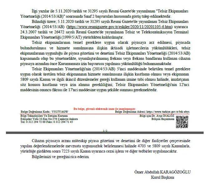 另外,BTK也向进口商发出了有关型式标准申请流程的正式信函。在该信函中,BTK也提醒进口商要注意市场监管的要求,以免遭受不必要的罚款。原文如图