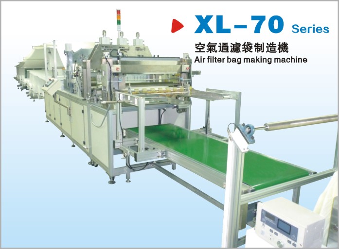 一台生产无纺布过滤袋的专用机器,从原料到成品完成均为一条线自动化作业.整洁,省时. 单片或整卷可自由切换,过滤袋中每个内置空间,均可调整,隔条和切口可自动分切为此机之另一特色.