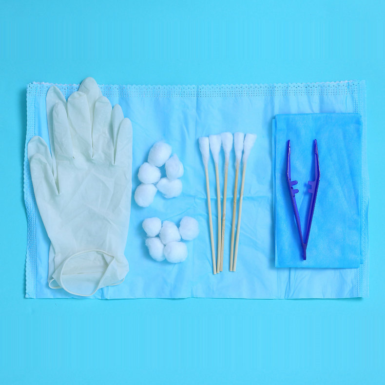 基本配置:一次性使用治疗巾、物品盒,选配产品:一次性使用  医用橡胶检查手套、检查手套、医用棉球、一次性医用垫、医用脱脂纱布块、医用棉签、碘伏棉球、妇科刮板、一次性弯钳、  一次性使用敷料镊、药杯、消毒刷。