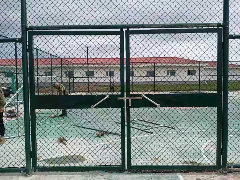 1.预埋件:根据围网立柱高度、抗风系数及力学原理设计大小及结构并焊接牢固。