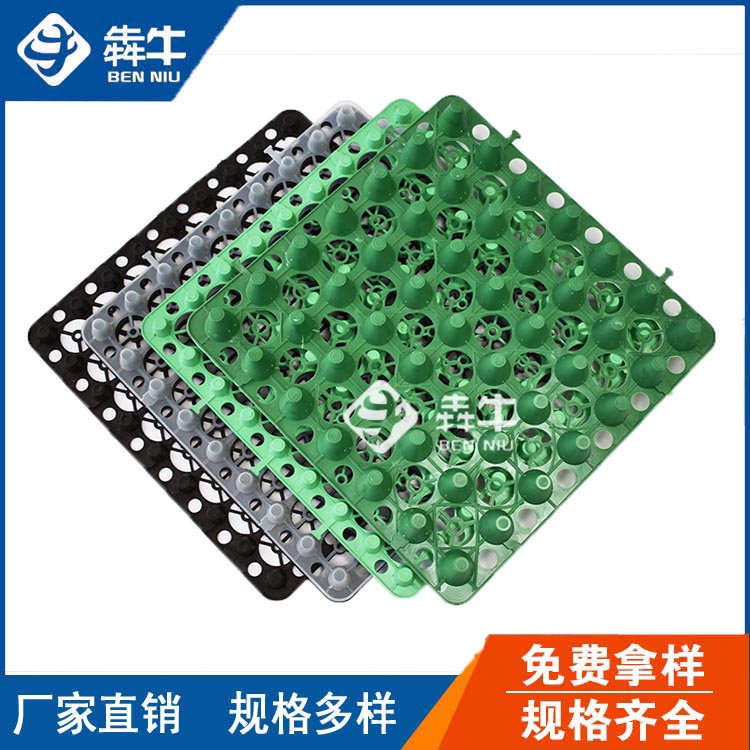 5.如果选用排水板,排水板的材料成本比蓄排水板略高。因为防排水板在铺设时,需要用支撑网格,以防止在回填土时土工布凹陷下去影响排水效果。