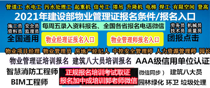 天津物业项目经理物业师八大员污水处理工BIM工程师考试