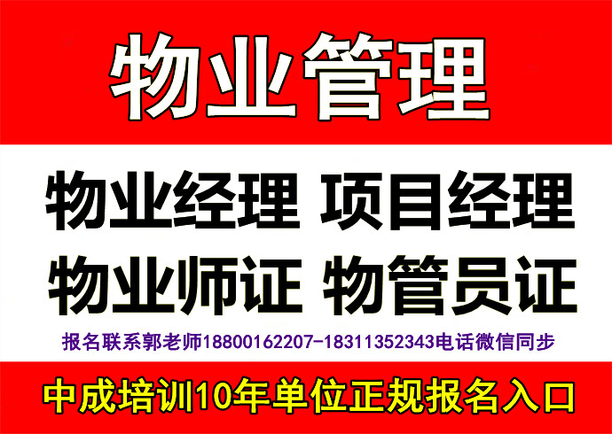 报考详情咨询中成培训郭老师 物业经理报考费1200含教材 网上查询 每三年一次继续教育