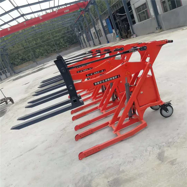 货叉是直接承载货物的叉形构件,它通过挂钩装在叉架上,两货叉间的距离可以根据作业的需要进行调整,由定位装置锁定。