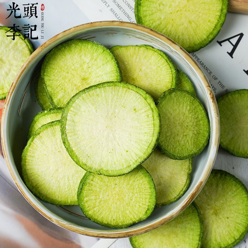 新鲜青萝卜,制作成青萝卜脆保存了新鲜青萝卜天然的色泽、形态和风味,高颜值,香脆爽口。