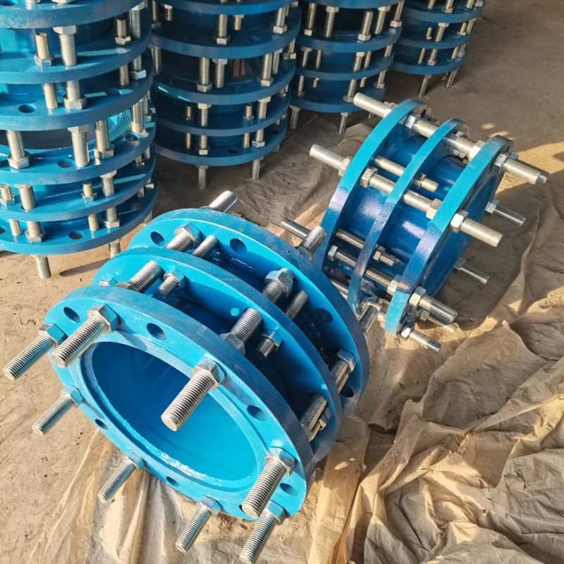 双法兰传力接头适用两边都是法兰的连接方式,安装时调节产品两端与管道或法兰的安装长度,安装和焊接完毕后,对角依次均匀拧紧压盖螺栓,使其成为一个整体,并有一定的位移量,方便安装维修,可根据现场尺寸进行调整。在工作时可以把轴向推力传递至整个管道.