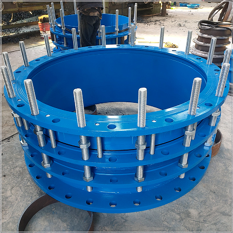 保护管道连接运行阀门可拆式双法兰传力接头是由松套伸缩接头和短管法兰、传力螺杆等构件组成,它能传递被连接件的压力推力(盲板力)和补偿管路误差,不能吸收轴向位移。重要用于泵、阀门、管路等附件的松套连接.
