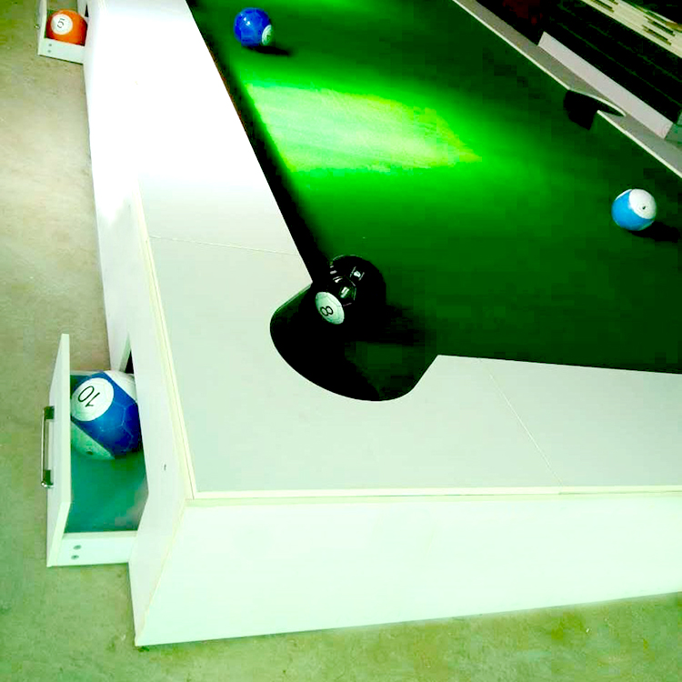 这款可以在桌面上踢足球的设备,融合了足球和台球的想法理念,就是在台球的桌面上,用脚踢足球的方式进球,它已经被好多健身中心,游乐中心等地方引进,可见它在市场上是多么的受大家的欢迎,而对于喜爱运动和桌球的人们来说,玩这款是再合适不过的了,可以给人不一样的体验。