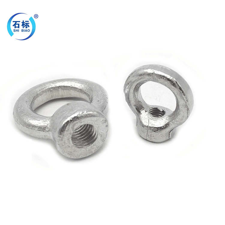 吊环螺母是指螺帽与螺栓或螺杆拧在一起用来起紧固作用的零件,所有生产制造机械要用的一种原件。吊环螺母为工程常用固定用挂件。螺母下方带有丝扣,可根据其不同规格,钻孔,利用螺口固定。吊环螺母是将机械设备紧密连接起来的零件,通过内侧的螺纹,同等规格吊环螺母和螺丝,才能连接在一起。吊环螺母,经常与外螺纹柱配合使用,起吊各种设备,如模具、机箱、电机等。