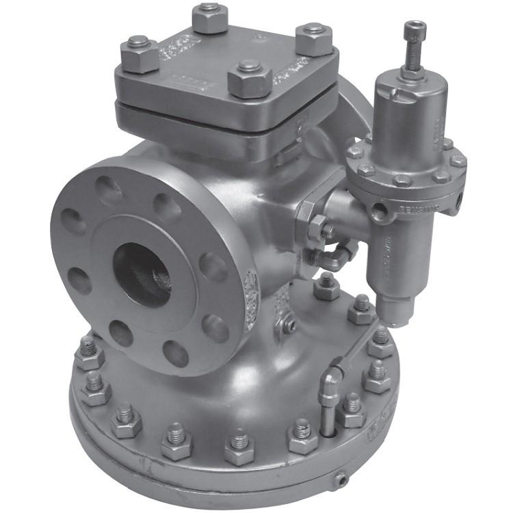 温度先导阀 ·T型温度先导阀适用于对温度的调节。先导阀测温头内填充了温度敏感液体,受热膨胀。液体的膨胀反馈到波纹管进行温度先导调节。T型温度先导阀安装了一个耐过热波纹管,以保护可能处于过热工况下的先导阀。T型温度先导阀的温控范围为60~260oF。  |