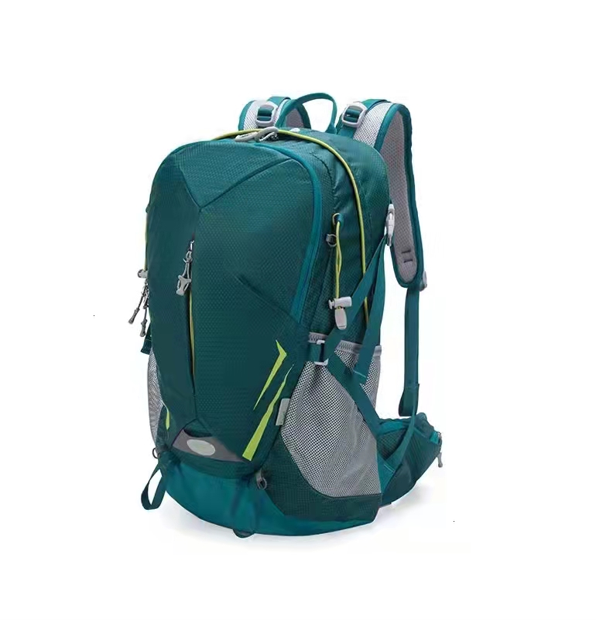该款骑行背包以绿色为主,局部加以黄色点缀,运动休闲。双肩背包的设计方便携带,且背包的胸前位置和腰腹部位置均配有子母扣,以固定背包位置,保证背包不易滑落。背包使用了锦纶和涤纶材质的缝合,锦纶质地较为牢固,耐用性较好,而涤纶弹性佳,透气性好,能给客户提供比较好的使用感,加上背包容量适中,能满足客户基本的户外出行需求。
