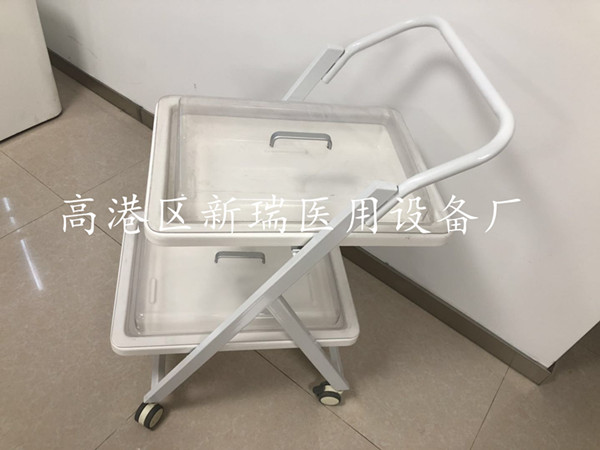 内镜转运车其周转箱材料亦由制造清洗槽台面的高分子复合材料独立开模制成,车体由不锈钢喷塑而成,具有耐腐蚀、不沾水、车行顺畅、取放方便等优点。盆内内镜存放导航隔条使污染部位和非污染部位分离。多层设计使客户在使用过程中可将清洁和污染的内镜分层标明后置放,避免交叉感染等功能