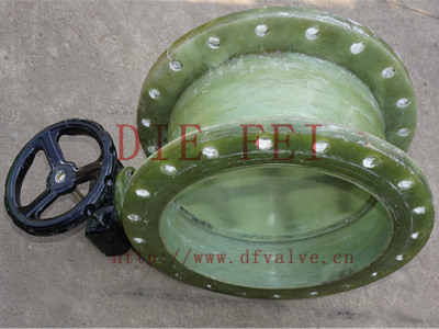玻璃钢蝶阀把主要易腐蚀部件如阀体、阀板等设计为玻璃钢材料,玻璃钢部件所使用的纤维、纤维织物与树脂类型由蝶阀的工作条件确定。玻璃钢阀体的主体形状为直管状,它的结构特点是以一段玻璃钢直管为基础,然后再增加法兰、密封环制造而成。该种蝶阀具有耐腐蚀能力强、成本低廉、制造工艺简单灵活等特点。质轻而硬、不导电、机械强度高、耐腐蚀、安装方便、耐温高。可添加防静电材料,达到防静电作用。玻璃钢蝶阀可用于输送腐蚀性气体的管道中,具有不腐蚀,寿命长的特点,可做成各种颜色。