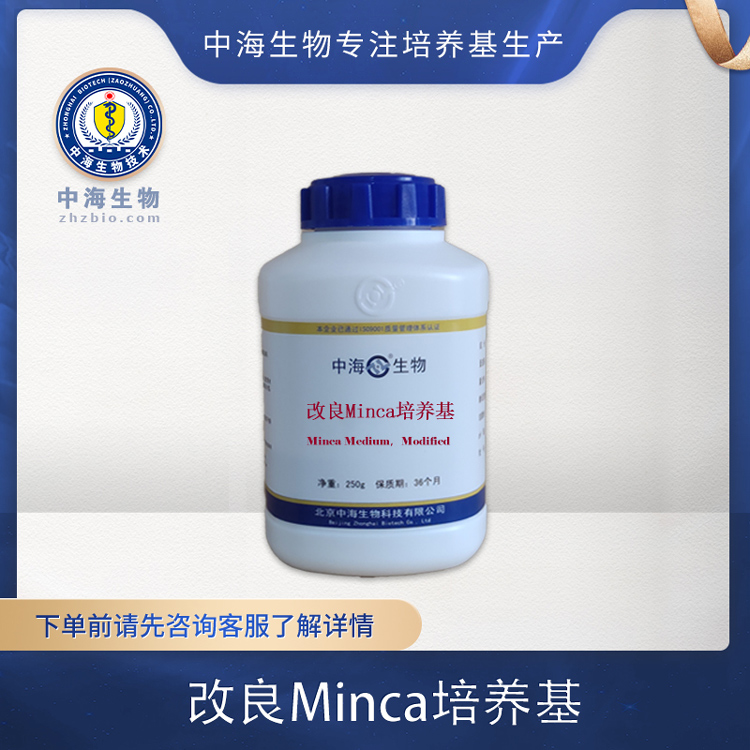 中海生物技术改良Minca培养基ZHzBio.CoM是即用型培养基,用于培养大肠埃希氏菌k88、k99、987P菌株。该培养基的组成成分为蛋白胨、酵母浸出粉、磷酸二氢钾、磷酸氢二钠以及微量盐,蛋白胨和酵母浸出粉含有细菌生长所需的氮源、维生素、氨基酸和其他生长因子,是培养基制备的基础原材料,在培养大肠埃希氏菌菌株中,是不可或缺的营养组分成分;磷酸二氢钾和磷酸氢二钠在改良minca培养基中做缓冲剂1300-1930-979为菌株的生长提供了一个相对稳定的酸碱缓冲体系;这些组成成分以供大肠埃希氏菌k88、k99、987P菌株的培养。