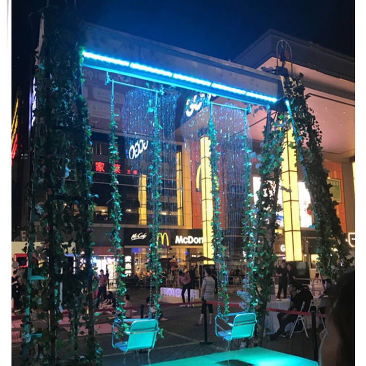 网红水幕秋千还可以设计别具一格的外观造型,周围围绕着花边显得格外的浪漫,各种颜色的主题就像坐在了童话中的秋千之上。水幕秋千更是水景艺术的集体表现,它的观赏性和实用性使它可以在一些地方担当人气设备,网红水幕秋千可以多人一起玩,是采用加厚钢管来支撑的加上数字水幕的落下,整体展现了水幕中荡秋千的少见玩法。