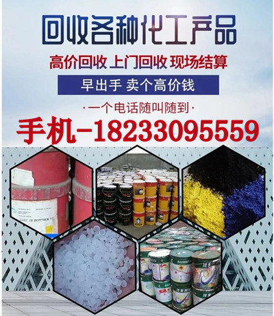 回收化工原料 回收库存化工原料价格 18233095559 公司拥有正规的物资回收资质。公司秉承客户至上的理念,通过多年来积攒的化工渠道进行资源整合二次利用,把保护环境,客户的利益作为优先考虑点,多年来为各种化工企业解决了积压库存占地和化工产品滞留、滞销等问题。我公司主要收购的产品包括:回收《报废、积压、库存、过期、水湿、水泡》染料 回收皮草染料、回收皮革染料、回收皮毛染料、回收纺织染料、回收印染染料、回收纤维染料、回收印花染料、回收环氧树脂 回收合成树脂,回收天然橡胶,回收合成橡胶,回收丁苯橡胶,回收SBS,热塑性弹体 ,回收塑料助剂,橡胶原料助剂,白炭黑、电镀原料、氧化钴、氧化钒、氧化铜、硫酸铜、硫酸镍,碳酸锂 氢氧化锂,回收油漆 油墨等各种库存化工原料均可高价回收,