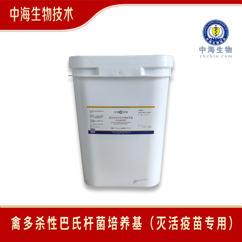 禽多杀性巴氏杆菌(灭活苗)培养基用于禽多杀性巴氏杆菌规模化培养或发酵。相比于传统禽多杀性巴氏杆菌培养基14-20h小时的培养时间ZHzBio.CoM该培养基缩短为4-8小时,更占据时间优势,大大缩减了时间成本。且中海生物技术所提供的培养基配方简单,可与lb培养基中的其余营养物质相互配合,促进禽多杀性巴氏杆菌快速达到对数生长期;其成分明了,不仅满足了微生物生长所需物质,而且更适合禽多杀性巴氏杆菌的快速生长,避免了因生产过程中杂菌的污染而对都会对下游制备成的免疫疫苗的稳定性造成不良影响,使培养所得的禽多杀性巴氏杆菌更利于用于制备疫苗。
