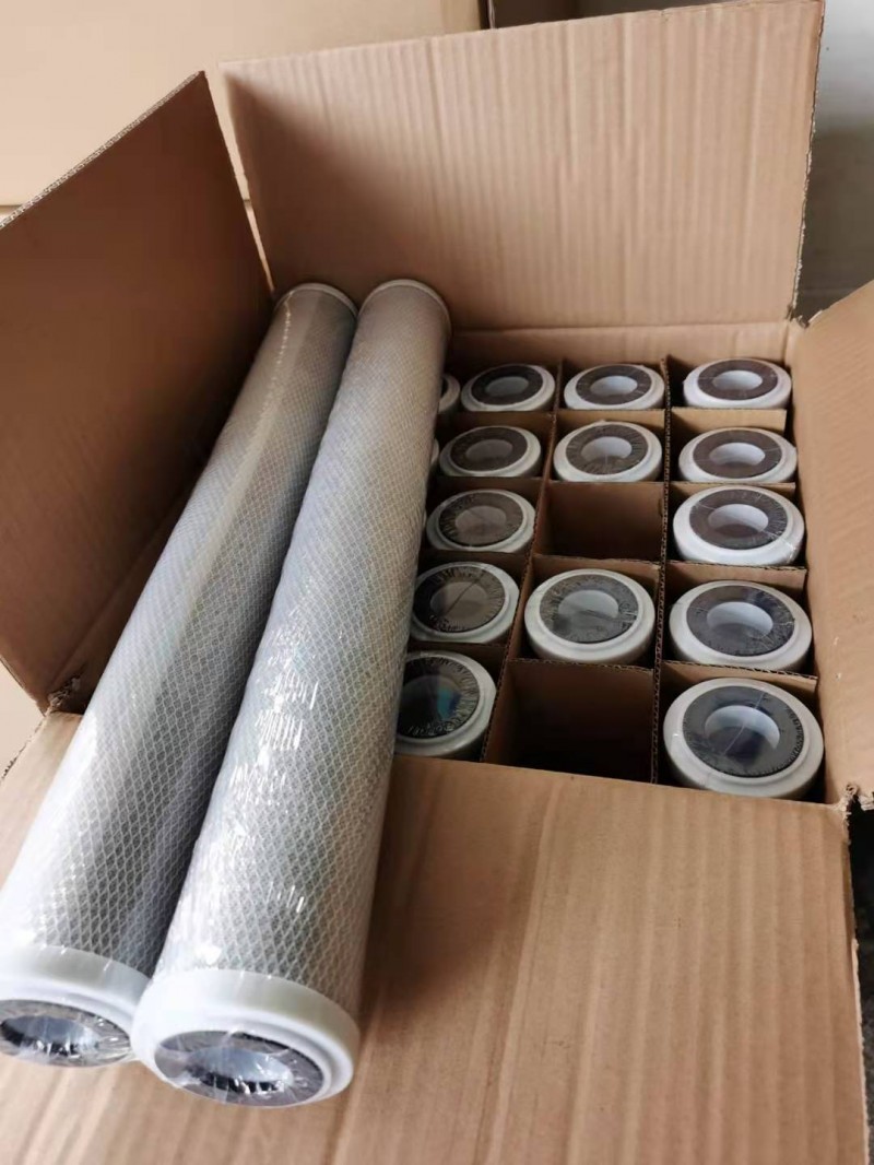 散装型活性碳滤芯将所需要的活性碳颗粒装入特别的塑料壳体中,用焊接设备将端盖焊接在壳体的两端,壳体的两端分别方入起过滤作用的无纺布滤片,确保滤芯在使用时不会掉落碳粉和黑水。根据客户的需要,壳体端盖可做成不同型号连接口的水处理滤芯,接口方式有:平压式、管道式。