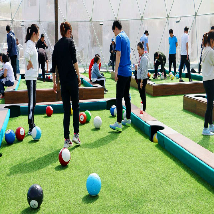 桌上脚踢台球的外观尺寸上都是可以定制的,有充气款、有木质款等材质生产的脚踢台球设备,像小区、大型广场、校园、健身房等都是可以引进这款游玩项目的