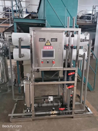 食品工业反渗透设备是在进水(浓溶液)侧施加操作压力,以克服自然渗透压,当食品工业反渗透设备高于自然渗透压的操作压力离加于浓溶液侧时水分子自然渗透的流动方向就会逆转。食品工业反渗透设备是膜法液体分离技术,进水(浓溶液)中的水分子部份通过反渗透膜成为稀溶液侧的净化产水;食品工业反渗透设备能阻挡所有溶解性盐及分子量大于100,但允许水分子透过,反渗透复合膜脱盐率一般大于98%。