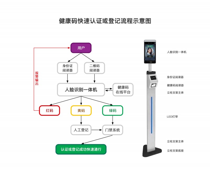 粤康码 国康码 医院健康行程码人脸识别测温一体机 启点科技