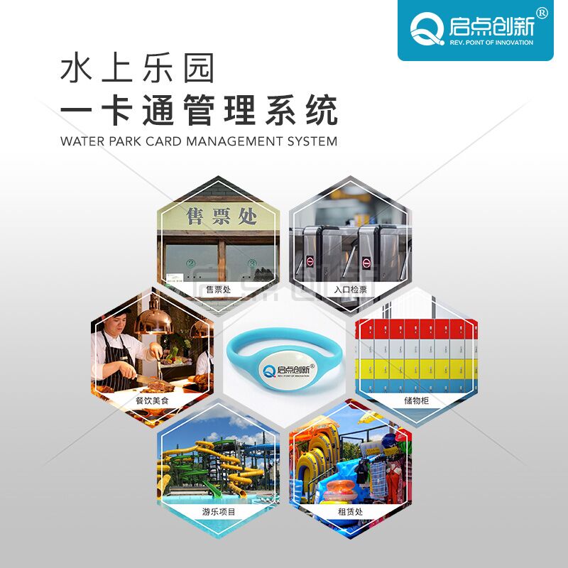 4.卡、手环:预先将游客须知和景区宣传图案以及卡证编号印制在卡上,后台启用该卡后,即可刷卡入园、消费、自助充值。可以实现资金存储,利于园区的资金管理和长期客户的吸附。
