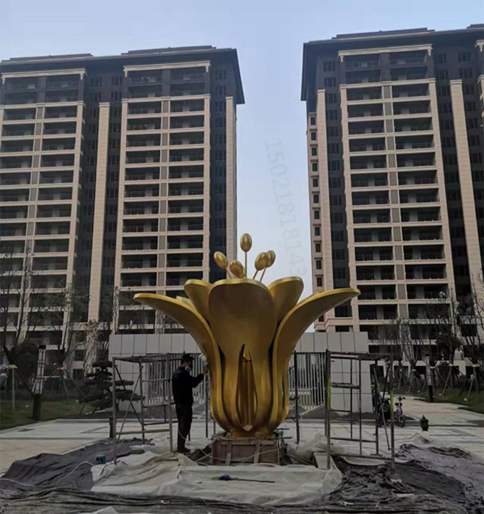 百合花雕塑它主要是用于景观的装饰和美化,由于它的出现而使城市公园、小区景观增加美感,丰富了城市居民的视觉享受。