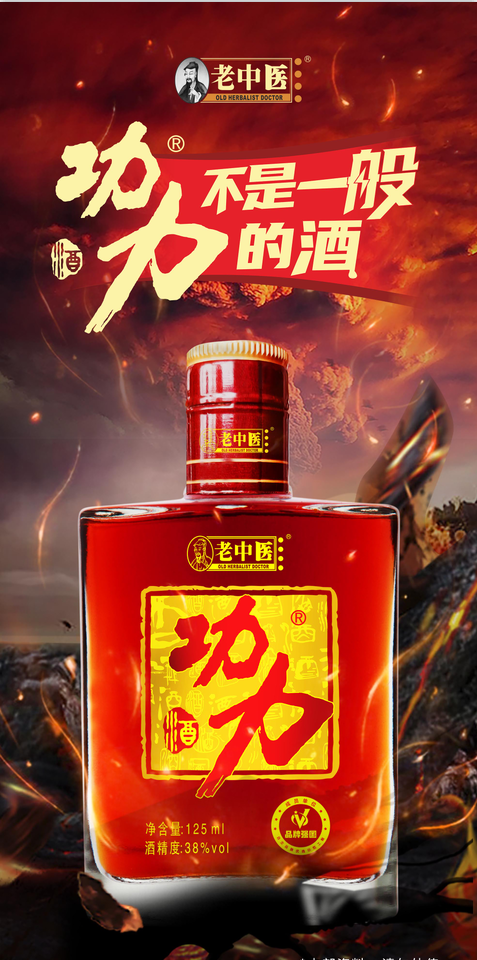 老中医集团致力于中医药+白酒文化的潜心研发,因此老中医品牌通过多年的研究、探索、和创新,精心研制推出了一款名为:“功力酒”的养生酒。“功力酒”强调的就是口感,喝酒不能像吃药,喝酒要愉悦,“功力酒”以自有品牌秘方为基础,口味以“古井”纯粮基酒结合多种药食材配方浸泡,用创新的现代生产工艺制作生产。“功力酒”以帮助当下亚健康人群提高免疫力,滋补身体,调养生息等为己任,做好酒、做养身体的酒满足不同用户的需求。
