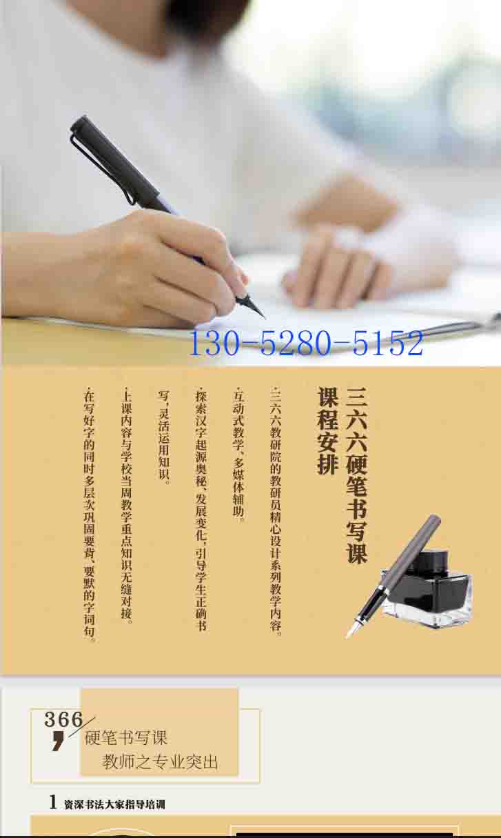 书法:让学生掌握书写要求和技巧,在训练过程中,展现各类书法字体的风格,并让学生初步掌握书写基础,同时培养学生的定力和耐力。硬笔教学方法:实用硬笔书法,针对学生握笔、坐姿错误、书写潦草、书写速度慢等问题,并与课本生词同步,时间短,提升快 。
