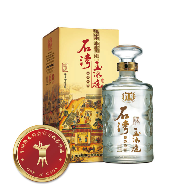 石湾玉冰烧·六埕藏酒,酒色微黄,纯粮酿造,包装蕴含广东清代特色文化,是广东真正实现市场化运作的中档产品,是具有广东特色的特产。