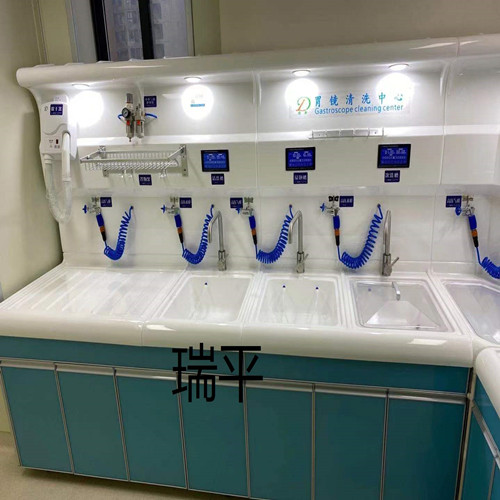 有机玻璃内窥镜清洗工作站产品特点:本产品采用高档有机玻璃材质制成,具有耐腐蚀、抗冲击力、对内窥镜无损伤等特点;产品主要采用微电脑控制系统,配备五槽清洗槽、高压水枪、高压气枪、水处理系统、气处理系统、干燥台、节液(酶)系统、给排水系统、照明系统及其他辅助设备。