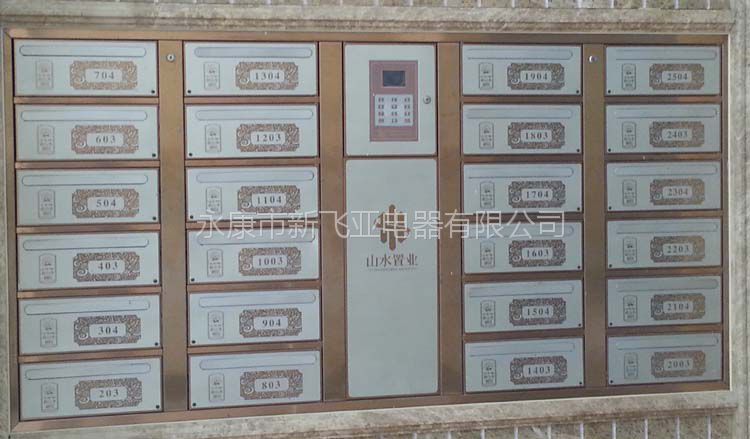 浙江文化用品 新飞亚办公用品网 浙江金华(信包柜)信报箱工厂 宁波不锈钢信报箱(信包箱)供应商 永康新飞亚信报奶箱 绍兴邮政信报箱代理商 作为新建小区及写字楼的配套产品之一,不仅是用户接收邮件和各类账单的重要载体,随着产品的不断升级换代,表面处理方式的推陈出新,在满足功能的同时,人们越来越倾向于把它作为建筑的一种装饰。作为永康新飞亚公司众多产品之一,信报箱经历了从木质信报箱、铁皮信报箱到不锈钢信报箱(信包柜),再到智能信报箱(信包箱)的一个发展过程,目前已形成涵盖智能信报箱、普通信报箱、别墅信报箱三大类多个系列的产品;