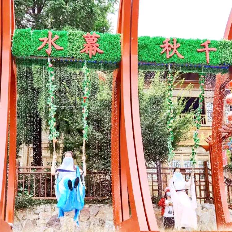 现如今秋千的种类越来越多,网红水幕秋千就是其中一种。它是一款无动力游乐设备,新颖的创意,不同的玩法,入市以来就深得大众追捧,秋千和水幕创意的组合,在水幕的上方安装有检测器,可以精准的收集到游玩者的信息,然后通过控制器来控制水幕落水的时机,当游玩者穿过水幕时,都会体验到惊险刺激感,生怕被水淋湿,从而增添了很多欢乐。